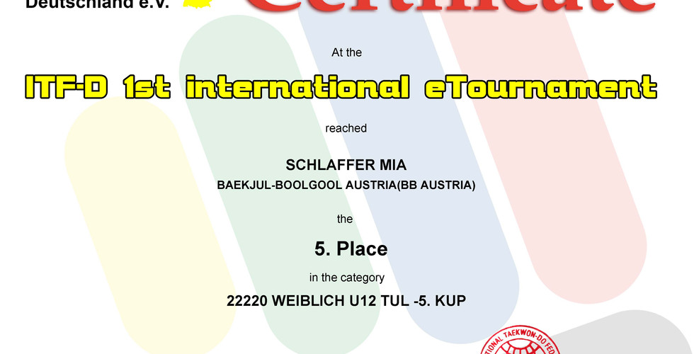 Aufgrund der Corona Situation ist es zurzeit nicht möglich ein Taekwon-Do Turnier abzuhalten. Die ITF Deutschland hat daher von 7.-17.5.2020 ein eTournament (Online Turnier) für die Disziplin TUL veranstaltet.